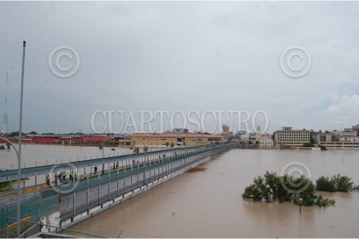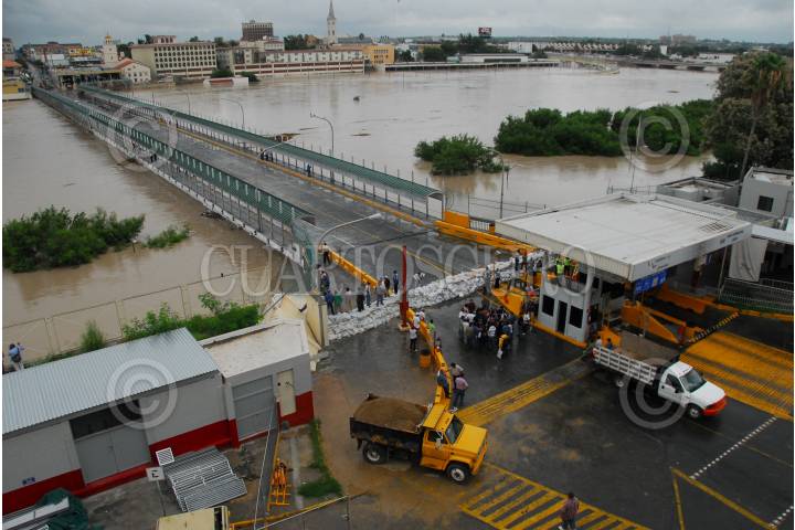 NUEVO LAREDO, TAMAULIPAS 10JULIO2010.- El puente fronterizo número uno que divide el territorio nacional con Estados Unidos continúa cerrado por la creciente del Río Bravo causada por las intensas lluvias que dejo a su paso el huracán Alex. FOTO: ALEXANDER CABRERA/LIDER INFORMATIVO/CUARTOSCURO.COM