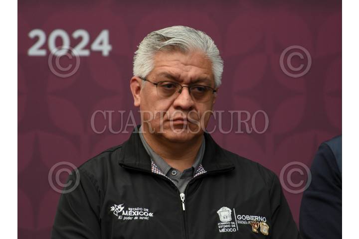 TOLUCA, ESTADO DE MÉXICO, 23AGOSTO2024.- Cristóbal Castañeda, Secretario de Seguridad Estatal, durante el informe a medios de las Acciones del Gobierno estatal implementada en Chalco a 21 día de las inundaciones que se registran en la colonias San Miguel Jacalones y Culturas de México. FOTO: CRISANTA ESPINOSA AGUILAR /CUARTOSCURO.COM