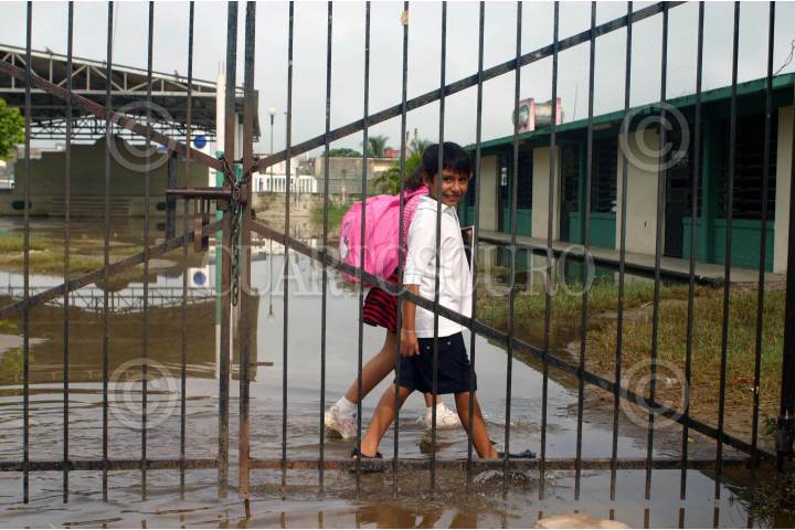 NACAJUCA, TABASCO, 09SEPTIEMBRE2005.- Alrededor de quinientos educandos de la Escuela Primaria Urbana Carlos A. Madrazo Becerra del ejido La Selva estan teniendo clases con adnegaciones fluviales debido a las lluvias. FOTO: Marco Polo Guzmán/CUARTOSCURO.COM