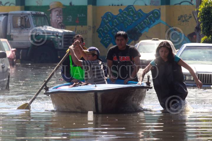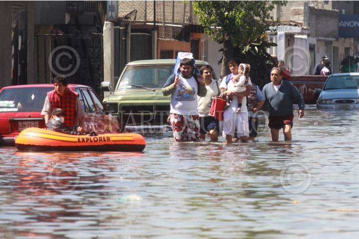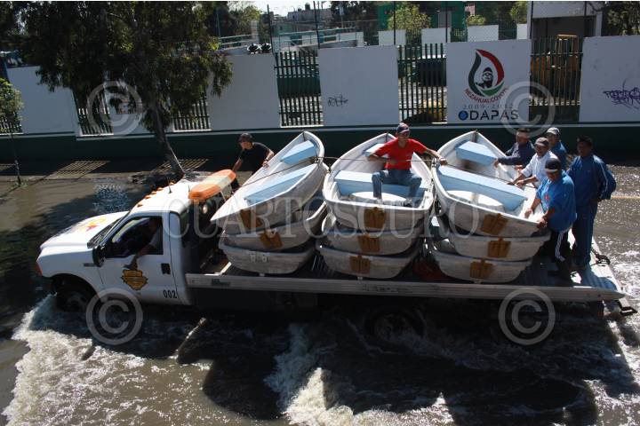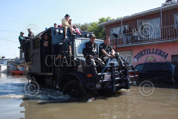 MÉXICO, D.F., 05FEBRERO2010.- Elementos del Escuadrón de Rescate y Urgencias Médicas (ERUM) de la policía capitalina continuan con las tareas de rescate en la colonia Arenal que quedo inundada al desbordarse el río de los Remedios. FOTO: SÁSHENKA GUTIÉRREZ/CUARTOSCURO.COM