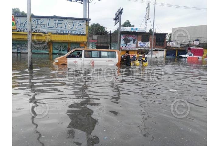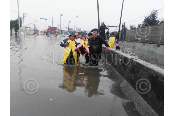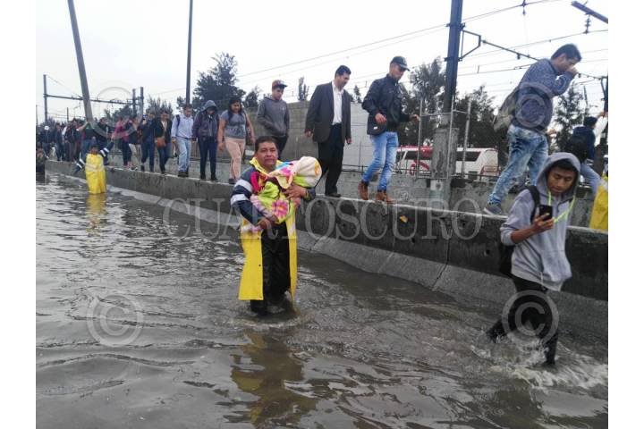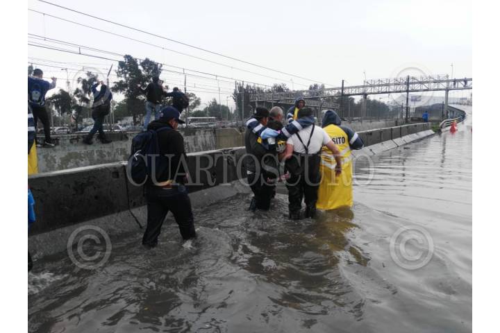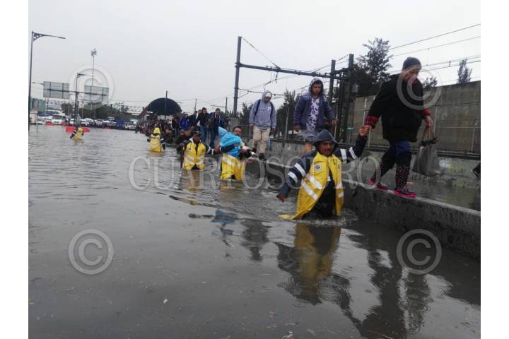 CIUDAD DE MÉXICO, 14JUNIO2018.- Debido a las intensas lluvias que han azotado todo el día a la capital se registró una inundación de poco más de un metro sobre Calzada Ignacio Zaragoza, a la altura del Puente de la Concordia impide la circulación, lo que ha generado que la gente que quiere llegar a sus casas lo tengan que hacer por el camellón del metro, servicio que se encuentra suspendido. FOTO: ESPECIAL /CUARTOSCURO.COM
