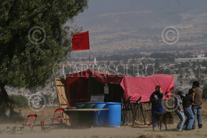 VALLE DE CHALCO, EDOMEX.., 09ENERO2008.- Integrantes del movimiento Antorcha Popular invadieron dos hectareas del cerro de la mesa ubicado a un costado de la colonia Xico, para cosntruir viviendas, en el lugar se observan material para construcción y personas vigilando la zona invadida. FOTO: SAÚL LÓPEZ/CUARTOSCURO.COM