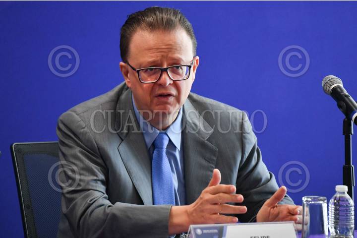 CIUDAD DE MÉXICO, 19JUNIO2024.- Felipe de la Mata, magistrado del Tribunal Electoral del Poder Judicial de la Federación (TEPJF), durante su intervención en la conferencia de prensa para informar sobre la asignación de los juicios de inconformidad del proceso electoral 2024 y plazos para el cierre del proceso para la validez o invalidez de la elección presidencial. FOTO: MARIO JASSO/CUARTOSCURO.COM