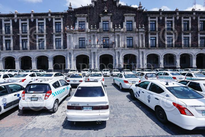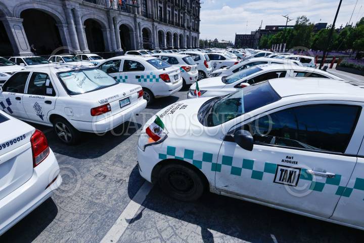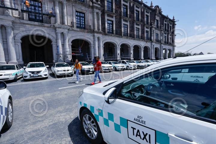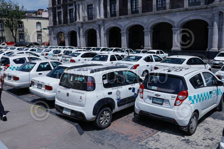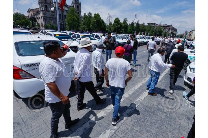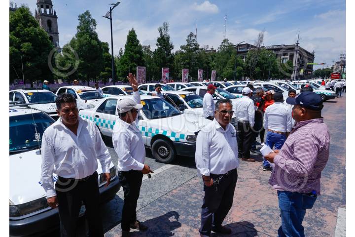 TOLUCA, ESTADO DE MÉXICO, 27AGOSTO2024.- Taxistas de San Felipe del Progreso se manifestaron en Palacio de Gobierno, bloqueando la avenida Lerdo de Tejada, denunciando la invasión de rutas por parte de una línea de autobuses. FOTO: CRISANTA ESPINOSA AGUILAR /CUARTOSCURO.COM