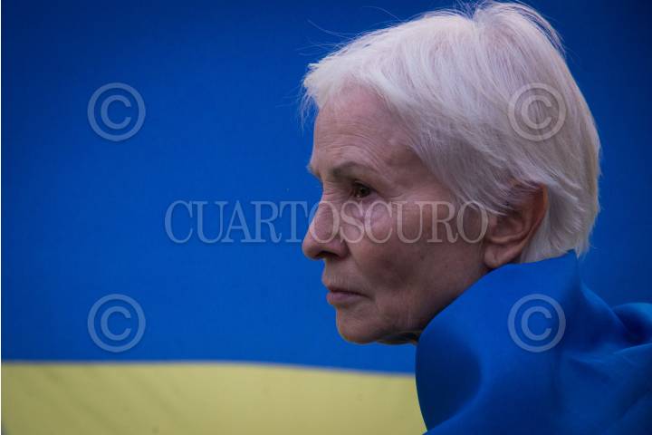 Ucraniana residente en México, durante la concentración en el Ángel de la Independencia por "la defensa de la libertad y la democracia en Ucrania" a un año de que comenzó la invasión militar de Rusia en Ucrania.