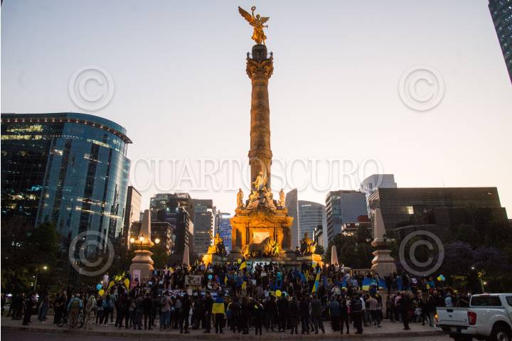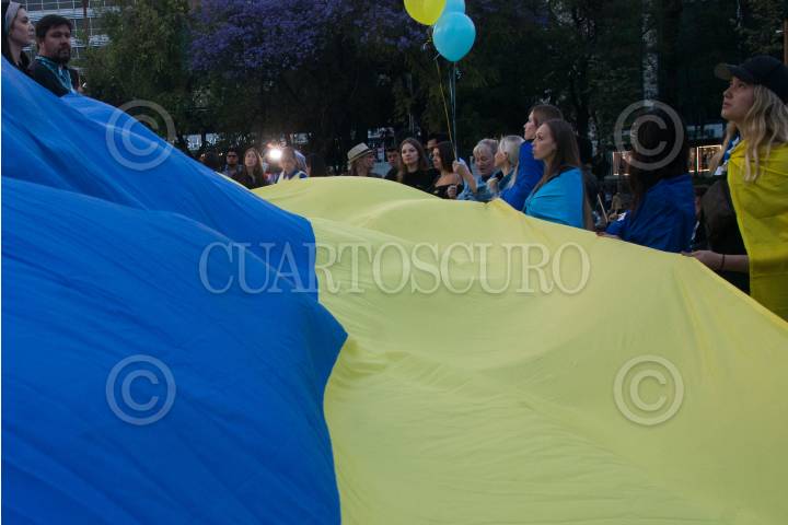Concentración en el Ángel de la Independencia por "la defensa de la libertad y la democracia en Ucrania" a un año de que comenzó la invasión militar de Rusia en Ucrania.