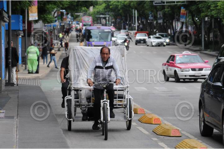 CIUDAD DE MÉXICO, 10JULIO2024. - Los ciclotaxis utilizan el área de la ciclopista para realizar sus trayectos. FOTO: DANIEL AUGUSTO /CUARTOSCURO.COM