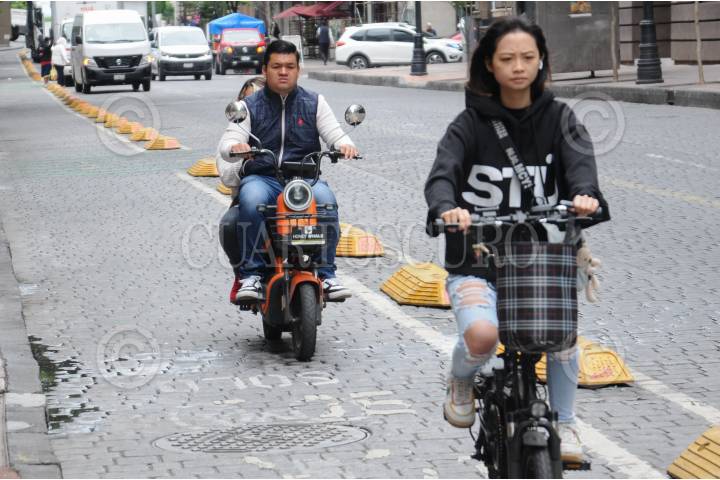 CIUDAD DE MÉXICO, 10JULIO2024. - Vehículos motorizados también utilizan el área de la ciclopista, dichos aparatos ahora tendrán que ser utilizados con casco. FOTO: DANIEL AUGUSTO /CUARTOSCURO.COM