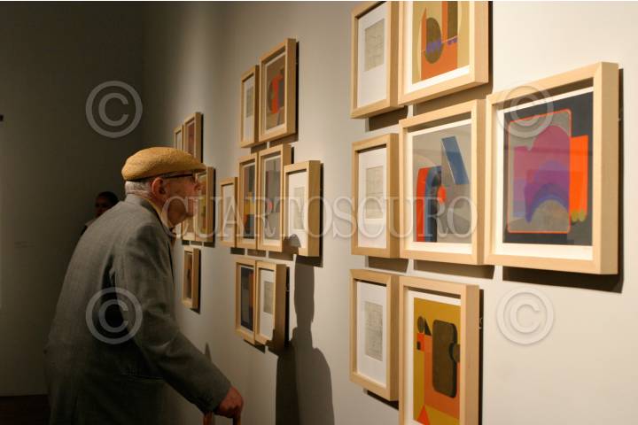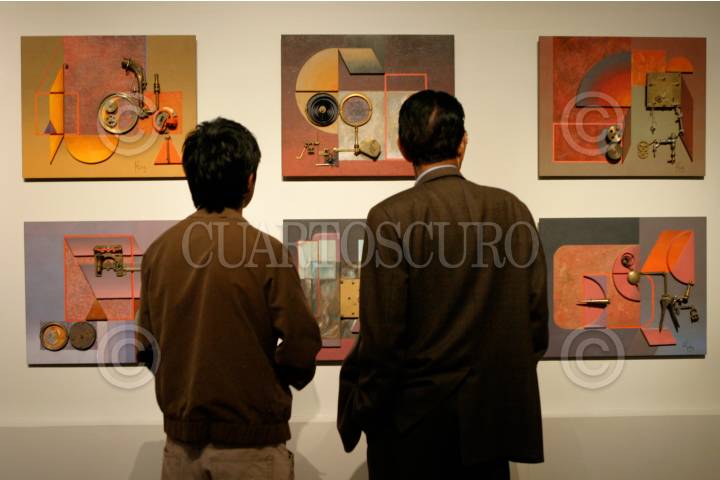 MÉXICO, D.F. 03DICIEMBRE2009.- En el Palacio de las Bellas Artes se inauguró la exposición "Invención constructiva" del artista plástico zacatecano Manuel Felguérez. FOTO: IVÁN STEPHENS/CUARTOSCURO.COM