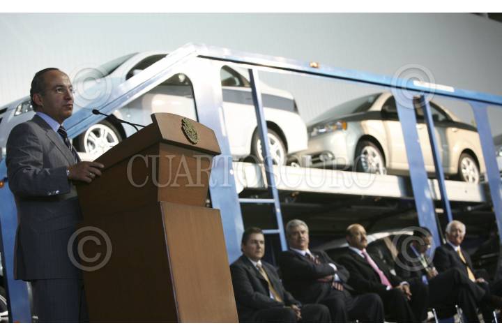 SAN LUIS POTOSI, SAN LUIS POTOSI, 30JULIO2008.-El presidente de Mexico Felipe Caderon Hinojosa, durante la inauguracion del complejo General Motors en San Luis Potosi. FOTO ALFREDO GUERRERO/CUARTOSCURO.COM