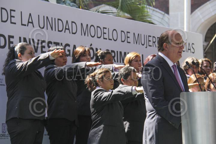 CUERNAVACA, MORELOS, 24ENERO2014.- Graco Ramírez, gobernador de Morelos, tomó protesta a 27 mujeres quienes integran la nueva Unidad Modelo de Mujeres Policías de Investigación Criminal. La ceremonia se llevó a cabo en la Plaza de Armas. FOTO: PATRICIA MORALES /CUARTOSCURO.COM
