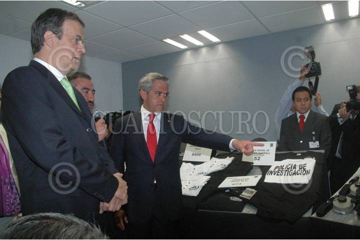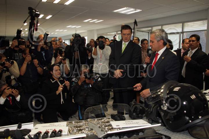 MÉXICO, D.F., 27MARZO2011.- Miguel Ángel Mancera, Procurador General de Justicia del Distrito Federal (PGJDF), explica algunos de los instrumentos que se utilizarán Marcelo Ebrard Casaubon, Jefe de Gobierno del Distrito Federal, una de la ceremonia de entrega de vehículos, placas y área de inteligencia de la nueva Policía de Investigación de la PGJDF. FOTO: CUARTOSCURO.COM
