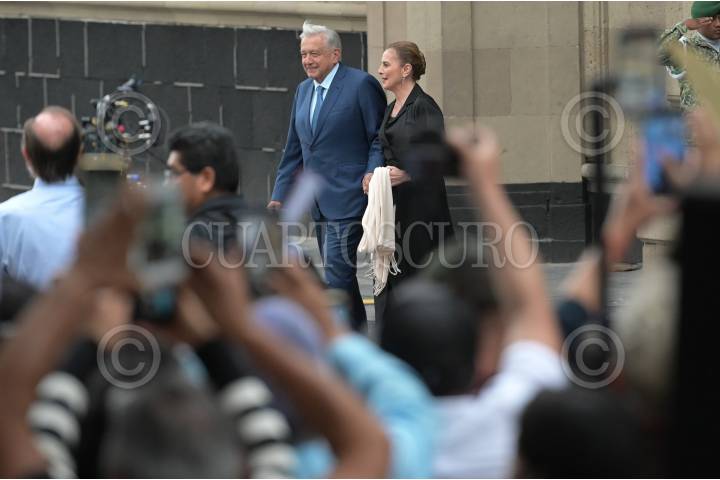 CIUDAD DE MÉXICO, 13AGOSTO2024.- Andrés Manuel López Obrador, presidente de México,acompaña a su esposa, la investigadora, Beatriz Gutiérrez Müller, a la presentación de su libro, Feminismo Silencioso. FOTO: DANIEL AUGUSTO/ CUARTOSCURO.COM