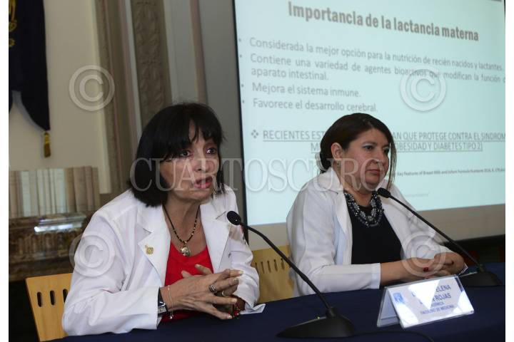 CIUDAD DE MÉXICO, 03AGOSTO2016.- Las investigadoras de la UNAM, Carmen Aguirre y Ana Limón, ofrecieron una conferencia de prensa en la cual señalaron que México es el segundo país en donde menos se practica la lactancia materna, la cual es primordial, fomentar esta actividad por los beneficios que aporta a la salud de la madre e hijo y por el vínculo emocional que establece entre ambos, sugirieron crear un Plan Nacional de Lactancia que desmitifique y promueva que las mujeres amamanten, durante su ponencia en la Casa Universitaria del Libro. FOTO: UNAM /CUARTOSCURO.COM
