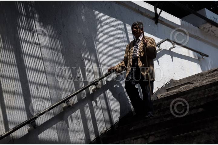 CIUDAD DE MÉXICO, 22MARZO2017.- Un señor de la tercera edad, e invidente baja las escaleras del metro para viajar en el transporte público. FOTO: TERCERO DÍAZ /CUARTOSCURO.COM