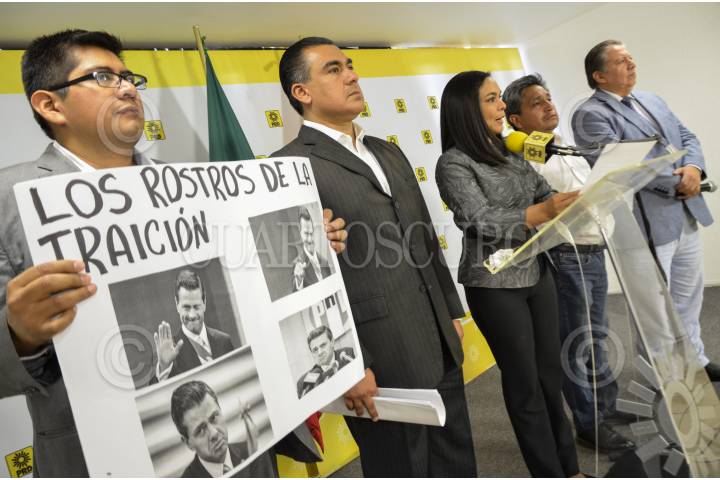 CIUDAD DE MÉXICO, 26OCTUBRE2016.- Beatriz Mojica Morga, secretaria general del Partido de la Revolución Democrática (PRD), anunció que este partido presentó ante la Cámara de Diputados una denuncia de hechos constitutiva de distintos supuestos del delito por traición a la patria contra el Jefe de Ejecutivo Enrique Peña Nieto por traicionar a la patria al permitirle la entrada al país y darle trato de primer mandatario al candidato presidencial estadounidense Donald Trump, a quien la guerrense tildo de persona non grata para los mexicanos. FOTO: MOISÉS PABLO /CUARTOSCURO.COM