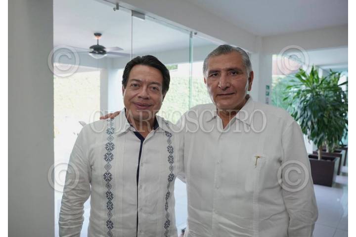 Mario Delgado, dirigente nacional de Morena, y Adán Augusto López Hernández, gobernador de Tabasco, se reunieron previo a las actividades del líder político en la entidad.