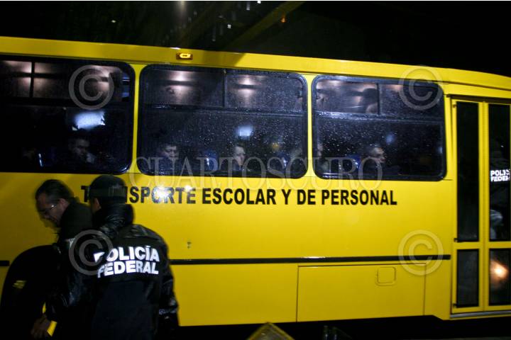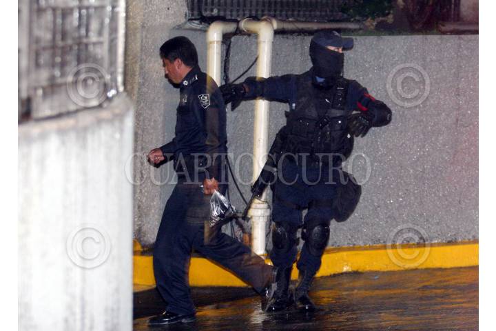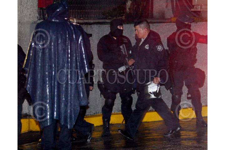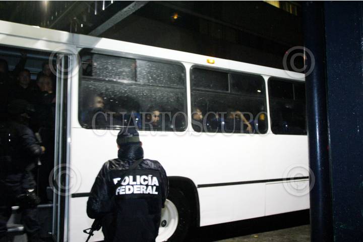 MÉXICO, D.F., 25JUNIO2009.- Esta madrugada llegaron a las instalaciones de la Siedo, policías municipales y ministeriales que fueron detenidos el día de ayer en Pachuca, Hidalgo. Despúes del operativo de la Policía Federal donde se han relacionado con el crimen organizado. FOTO: LUZ ACEVEDO/CUARTOSCURO.COM