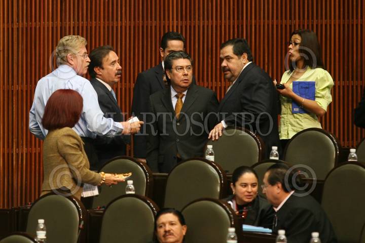 MÉXICO D.F. 30ABRIL2008.-Se realizó la ultima sesión ordinaria del segundo periodo del segundo año, de sesiones en la Cámara de Diputados.En la imagen los diputados, Javier González Garza (PRD) Emilio Gamboa Patrón (PRI) Samuel Aguilar (PRI) y Hector Larios (PAN). FOTO: GUILLERMO PEREA /CUARTOSCURO.COM