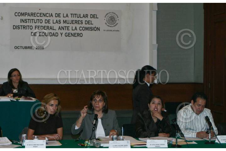 MÉXICO D.F., 17OCUBRE2008.- La diputada local María del Carmen Peralta; Martha Lucia Micher Camarena, directora general del Instituto de las Mujeres del D.F.; la diputala local Leticia Quezada Contreras y el diputado local Enrique Pérez Correa durante la comparecencia de la titular del Instituto de las Mujeres ante las comisiones de equidad y genero de la Asamblea Legislativa. FOTO: RODOLFO ANGULO/CUARTOSCURO.COM