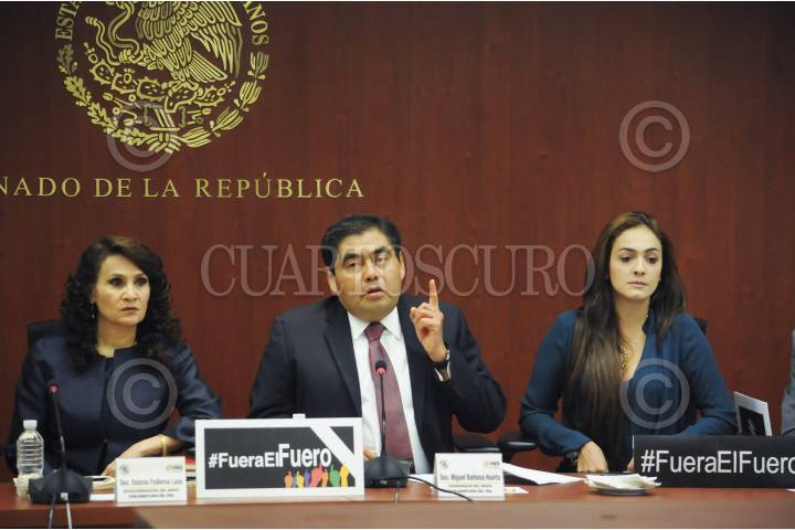 CIUDAD DE MÉXICO, 27SEPTIEMBRE2016.- Senadores del PRD, encabezados por el coordinador de la bancada, Miguel Barbosa, ofrecieron una conferencia de prensa para anunciar que presentaron ante la Mesa Directiva del Senado de la República la solicitud para que se les retire el fuero constitucional al que tienen derecho, por considerarlo “un derecho a la impunidad”. FOTO: DIEGO SIMÓN SÁNCHEZ /CUARTOSCURO.COM