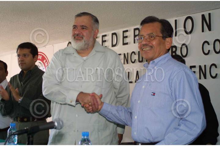 México, D.F. 21 MARZO 2004.- José Luis Soberanes, presidente de la CNDH y Heladio Ramírez, titular de la Confederación Nacional Campesina, durante el encuentro con Nuestros Orígenes “La presencia de Benito Juárez”, en las instalaciones de la CNC. FOTO: Juan Sotelo/CUARTOSCURO.COM