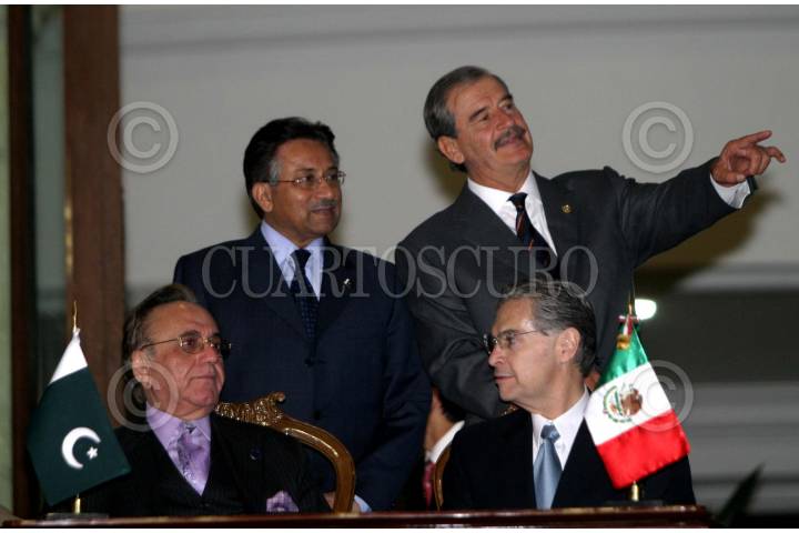 MEXICO, D.F. 02DICIEMBRE2004.- Pervez Musharraf, presidente de la república Islámica de Pakistan y el Presidente de México, Vicente Fox Quesada en la residencia oficial de los Pinos. FOTO:Eunice Adorno_CUARTOSCURO.COM