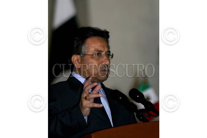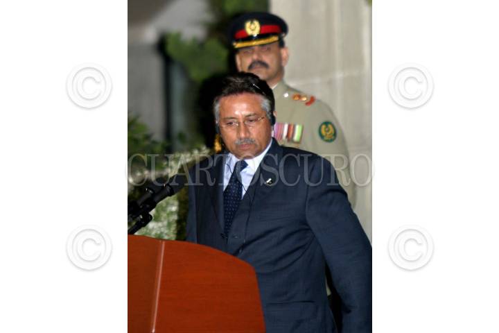 MEXICO D.F 02 DICIEMBRE 2004.- Pervez Musharraf, presidente de la república Islamica de Pakistan durante su discurso en la residencia oficial de los Pinos como parte de su visita oficial por primera vez en nuestro país. FOTO:Eunice Adorno_CUARTOSCURO.COM