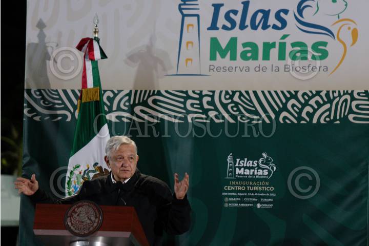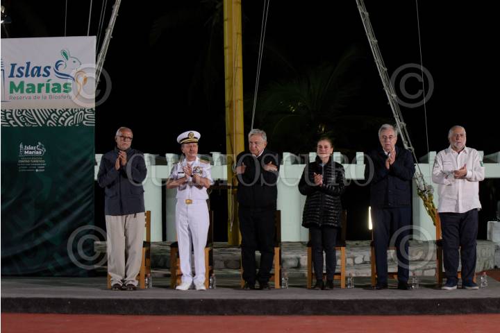 Andrés Manuel López Obrador, presidente de México, encabezó la inauguración de la Reserva de la Biósfera de Islas Marías. El presidente estuvo acompañado de: Miguel Ángel Navarro Quintero, gobernador de Nayarit; Rafael Ojeda Durán, secretario de Marina; Beatriz Gutiérrez Müller, presidenta honoraria del Consejo Asesor Honorario de la Coordinación Nacional Memoria Histórica y Cultural de México; Rubén Rocha, gobernador de Sinaloa y Miguel Torruco Marqués, Secretario de Turismo.