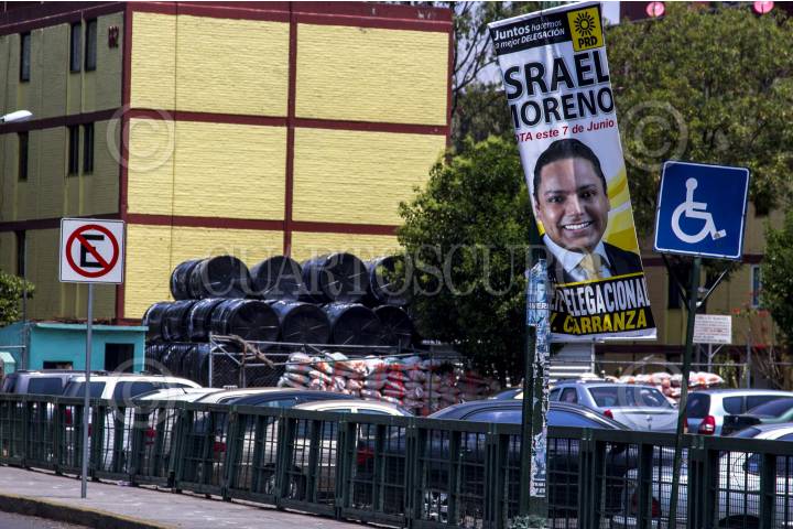 MÉXICO, D.F., 17MAYO2015.- Al termino del evento de los candidatos a delegados en Venustiano Carranza donde informaron que la gente no puede recibir apoyos condicionados por el voto hacia algún partido político en especial. Esthela Damián candidata por Movimiento Ciudadano, hizo mension que en la unidad habitacional Lazaro Pavia, ubicada a un costado de la Explanada delegacional de Venustiano Carranza sobre Fray Servando se mantienen mas de 100 tinacos de Agua los cuales presuntamente usa el candidato del PRD, Israel Moreno y su partido para pedir el voto a los ciudadanos sin que esto se haya confirmado, vecinos también hicieron mención de este acto. FOTO: ENRIQUE ORDÓÑEZ /CUARTOSCURO.COM