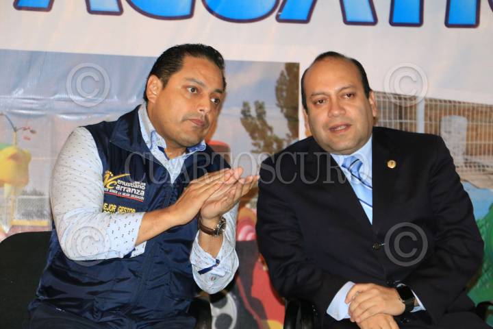 CIUDAD DE MÉXICO, 16MARZO2016.- Israel Moreno, delegado en Venustiano Carranza, acompañado de Alejandro Piña, Alejandro Piña Medina, Director General de Abasto de la SEDESO, durante la conferencia y firma de convenio de la sgarantias con los locatarios de la nave mayor del mercado de la Merced. FOTO: SAÚL LÓPEZ /CUARTOSCURO.COM