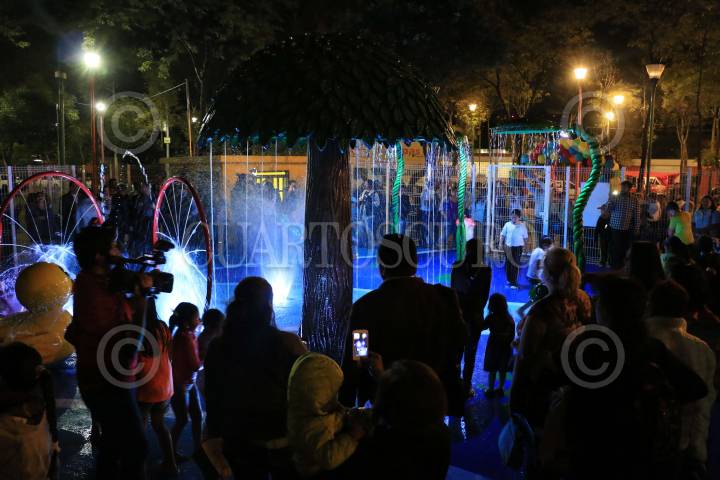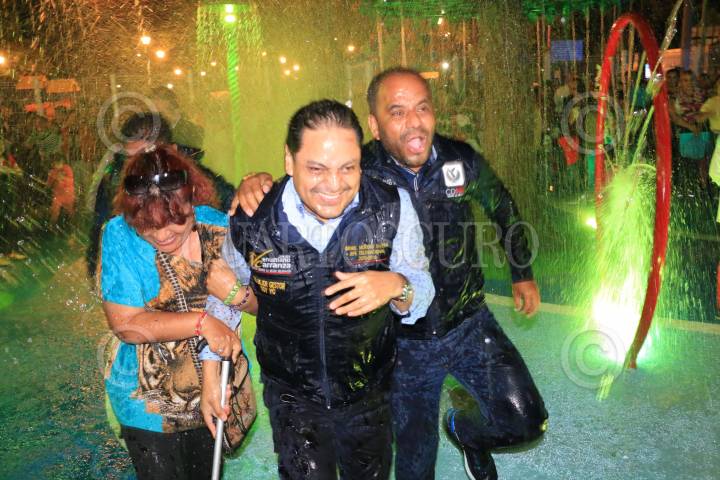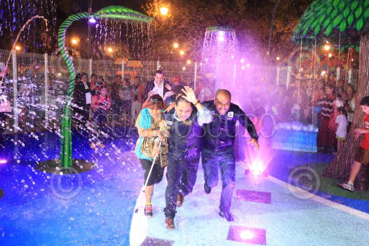 CIUDAD DE MÉXICO, 29NOVIEMBRE2016.-Israel Moreno delegado en Venustiano Carranza acompañado de el ex delegado y asambleísta constituyente Julio César Moreno, inauguraron el parque acuático Chiapas ubicado sobre la avenida Fray Servando. Al término de la inauguración el jefe delegacional se introdujo con los niños en las fuentes brotantes del parque acuático. FOTO: SAÚL LÓPEZ /CUARTOSCURO.COM