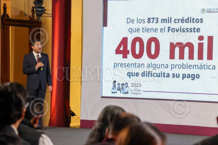 CIUDAD DE MÉXICO, 31MARZO2025.- Martí Batres, director del IMSS, informó que al menos 400 mil créditos del Fovissste presenta alguna problemática que dificulta se pago, por lo que la presidenta Claudia Sheinbaum a dado la instrucción que cualquiera que ya haya pagado el doble del valor de su crédito inicial se dará por finiquitado, liberado así de la deuda al trabajador o trabajadora. FOTO: MOISÉS PABLO/CUARTOSCURO.COM
