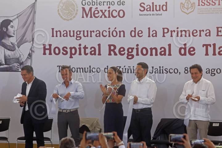 TLAJOMULCO DE ZÚÑIGA, JALISCO. 08AGOSTO2025.- Claudia Sheinbaum Presidenta de la Republica, Martí Batres Director de ISSSTE y Pablo Lemus Gobernador del Estado, encabezaron la Inauguración de la Primera Etapa del Hospital Regional de Tlajomulco, Hospital de Alta Especialidad del IISSSTE. FOTO: FERNANDO CARRANZA GARCIA / CUARTOSCURO.COM