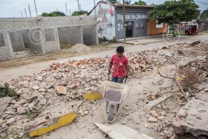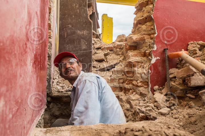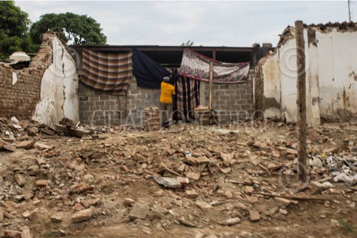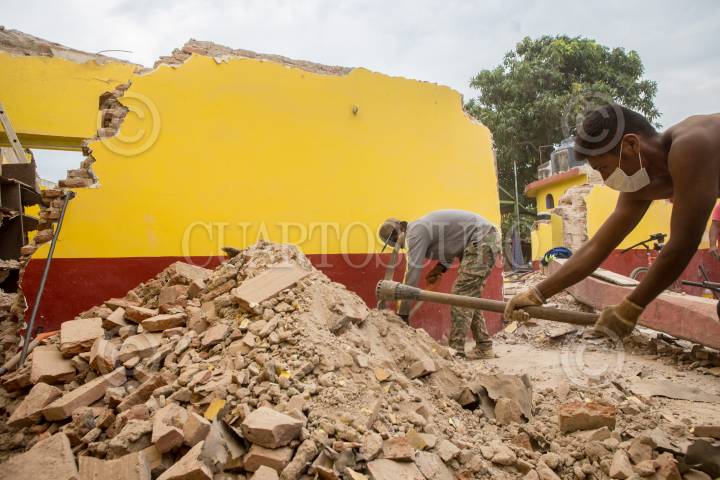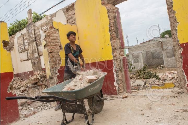 UNIÓN HIDALGO, OAXACA, 28OCTUBRE2017.- A más de dos meses del sismo que azotó a la zona del Istmo en Oaxaca, pobladores realizan demoliciones de estructuras y limpieza de escombros en sus barrios. FOTO: TERCERO DÍAZ /CUARTOSCURO.COM