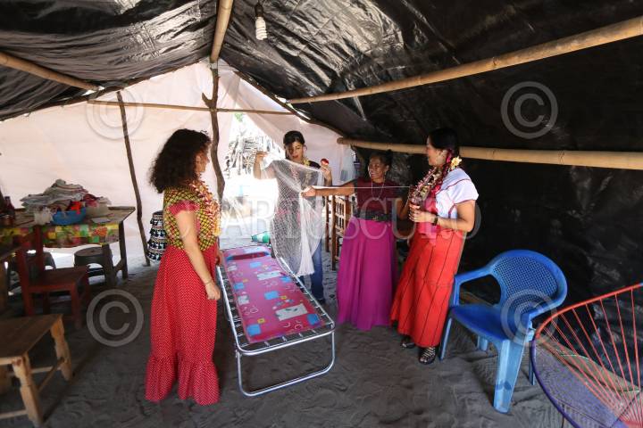 SAN MATEO DEL MAR, OAXACA, 09NOVIEMBRE2017.- las cantantes oaxaqueñas, Lila Downs, Susana Harp, Ana Díaz y Natalia Cruz realizaron un recorrido en el municipio de San Mateo del Mar, mismo que resultó afectado luego de los sismos del pasado 7 y 23 de septiembre. Resultado del concierto Oaxaca Corazón que se realizó el 17 de septiembre en la ciudad de Oaxaca en beneficio de los damnificados por el sismo, las cantantes hicieron entrega de diversos apoyos, principalmente catres para aquellas personas que perdieron sus pertenencias, además recorrieron la localidad para verificar que las lonas y demás materiales adquiridos con lo recaudado hayan sido entregados. FOTO: ARTURO PÉREZ ALFONSO/ CUARTOSCURO.COM