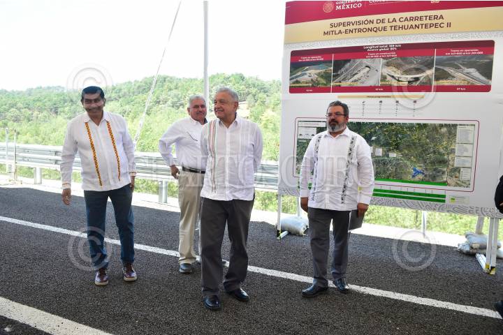Andrés Manuel López Obrador, presidente de México, encabezó la supervisión de obras de la autopista de Oaxaca al Istmo de Tehuantepec.