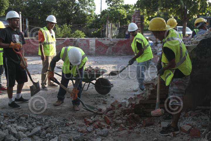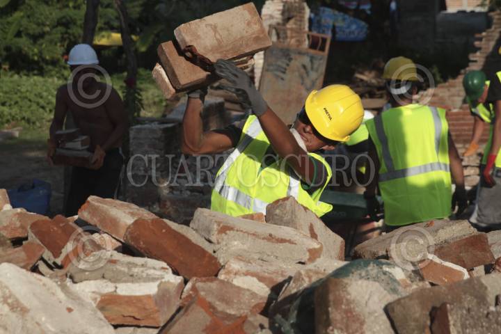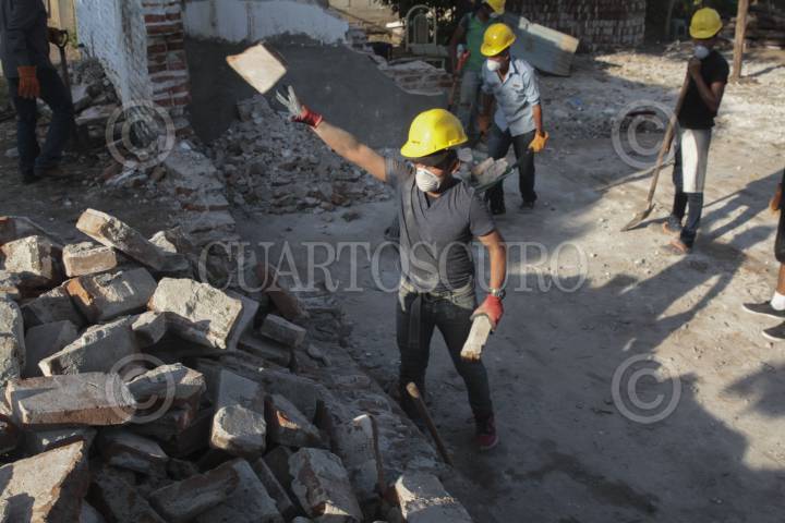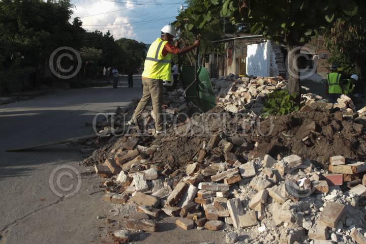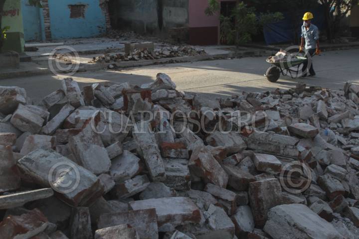 IXTEPEC, OAXACA, 11OCTUBRE2017.- Brigadas del Viacrucis Guadalupano de Migrantes ayudaron a la remoción de escombros en las casas afectadas por los sismos de septiembre que azotaron esta región, uno de los objetivos de este movimiento es solidarizarse con el pueblo mexicano ya que reconocen que mucha gente de aquí les ayuda en su pesada y peligrosa travesía hacia los Estados Unidos. FOTO: MOISÉS PABLO /CUARTOSCURO.COM