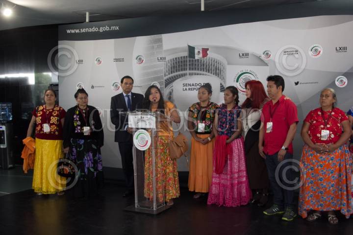 CIUDAD DE MÉXICO, 30NOVIEMBRE2017.- Mujeres de diferentes zonas del Istmo del estado de Oaxaca realizaron una conferencia de prensa para exigir a las autoridades se destinen recursos a la zona afectadas por el sismo del pasado 7 de septiembre. Esto de la mano de los senadores Benjamin Robles y la senadora Layda Sansores. FOTO: GALO CAÑAS /CUARTOSCURO.COM