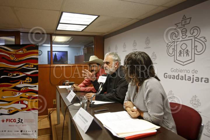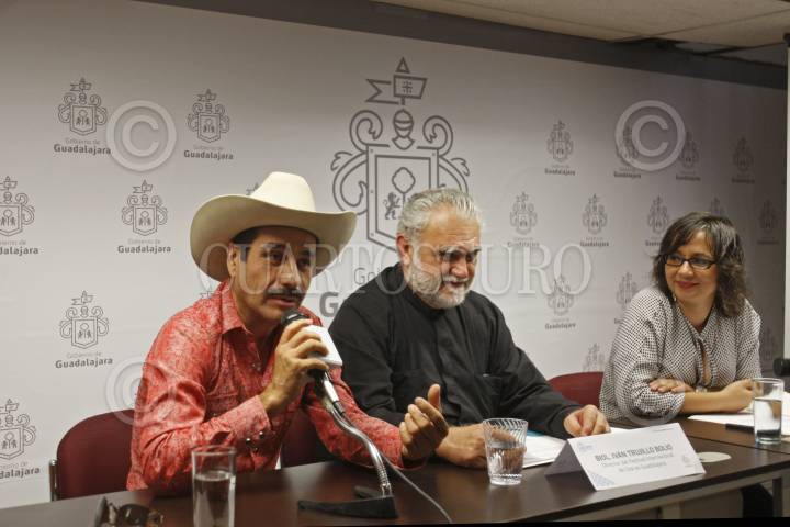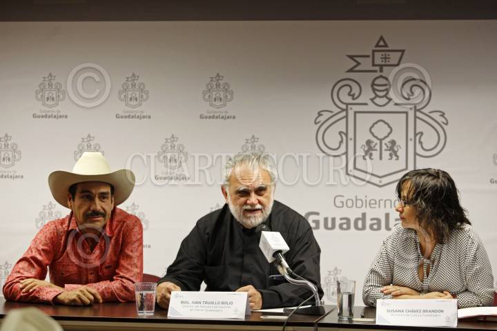 GUADALAJARA, JALISCO, 08JUNIO2016.- El Festival Internacional de Cine en Guadalajara (FICG) y el Ayuntamiento de Guadalajara, ofrecieron una conferencia de prensa con motivo de la participación conjunta para llevar a cabo la iniciativa de proyecciones en distintos puntos de la ciudad para la próxima edición del festival, dicha rueda de prensa que se llevo a cabo en palacio Municipal, fue encabezada por sus titulares, Susana Chávez Brandon, Directora de Cultura e Iván Trujillo Bolio, Director del FiCG, así como del Charro de Toluquilla. FOTO : FERNANDO CARRANZA GARCIA / CUARTOSCURO.COM