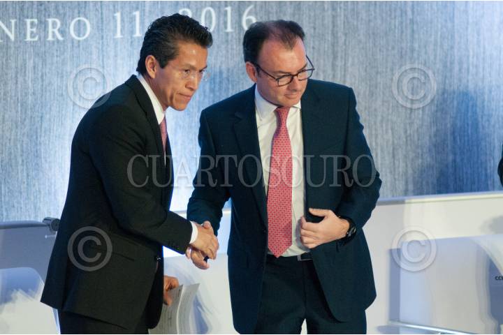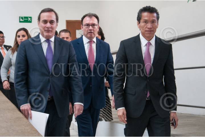 MÉXICO, D.F., 1DICIEMBRE2016.- Juan Pablo Castañón Castañón, presidente del Consejo Coordinador Empresarial (CCE); Luis Videgaray Caso, secretario de Hacienda y Crédito Público, y Aristóteles Nuñez, Jefe del Servicio de Administración Tributaria, encabezaron la presentación de la Simplificación Fiscal, base de Confianza, en las instalaciones del SAT. FOTO: DIEGO SIMÓN SÁNCHEZ /CUARTOSCURO.COM