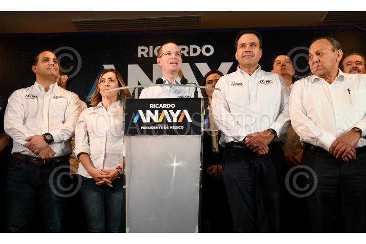 SONORA, HERMOSILLO, 17MAYO2018.- Ricardo Anaya, candidato presidencial por la coalición "Por México al Frente", ofreció una conferencia de prensa en la que insistió que bajará el IVA a la mitad, del 16 al ocho por ciento en los estados fronterizos, al tiempo que implementará estímulos para que se iguale el precio de la gasolina con el de los Estados Unidos. Lo acompañaron Damián Zepeda y Jesús Zambrano. FOTO: CUARTOSCURO.COM