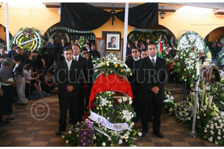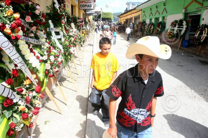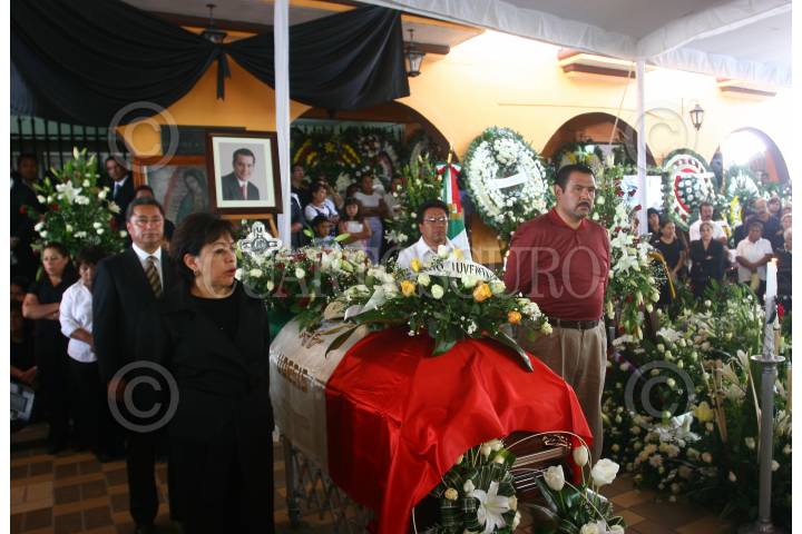 IXTAPAN DE LA SAL, ESTADO DE MEXICO., 05OCTUBRE2005.- Miles de habitantes de Ixtapan de la Sal, presidentes municipales, secretarios y trabajadores del gobierno del Estado de México, acompañaron a familiares del edil de Ixtapan de la Sal Salvador Vergara Cruz durante su funeral que se realizó en la explanada del municipio, debido a que el dia de ayer el alcalde fuera asesinado por unos pistoleros cuando viajaba en el kilómetro 2 de la carretera de Pilcaya -Guerrero- a San Alejo . FOTO: SAÚL LÓPEZ/CUARTOSCURO.COM