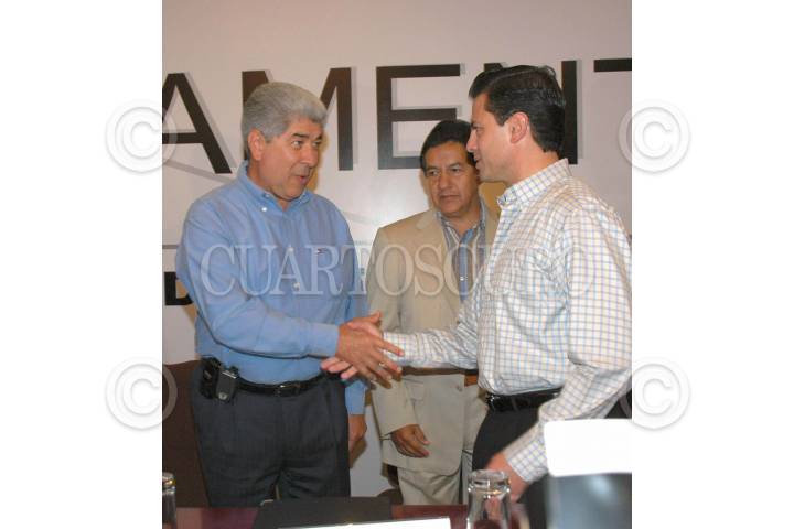 IXTAPAN DE LA SAL, ESTADO DE MÉXICO 07JUNIO2007.- El presidente de la Comisión de Gobierno de la Asamblea Legislativa del D.F Victor Hugo Cirigo saluda al gobernador del Estado de México Enrique Peña Nieto durante el encuentro Parlamentario de la Asamblea legislativa del D.F. y la LVI Legislatura del Estado de México. FOTO: CUARTOSCURO.COM