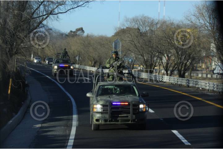 IXTLAHUACA, ESTADO DE MÉXICO, 22ENERO2019.- Los medios de comunicación fueron trasladados en camiones de la Secretaría de la Defensa custodiados por dos camionetas artilladas de la dependencia, durante la gira de Andrés Manuel López Obrador, Presidente de México, por la entidad mexiquense. FOTO: GALO CAÑAS /CUARTOSCURO.COM