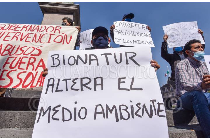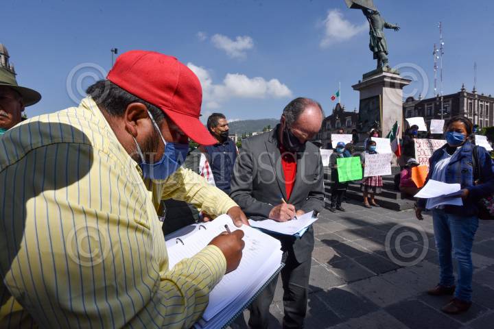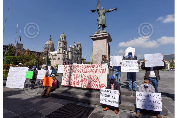 Habitantes del municipio de Ixtlahuaca se manifestaron en la Cámara de Diputados local para denunciar y exigir la reubicación de la empresa Bionatura, a la cual responsabilizan del grave daño que han sufrido sus campos de cultivo.