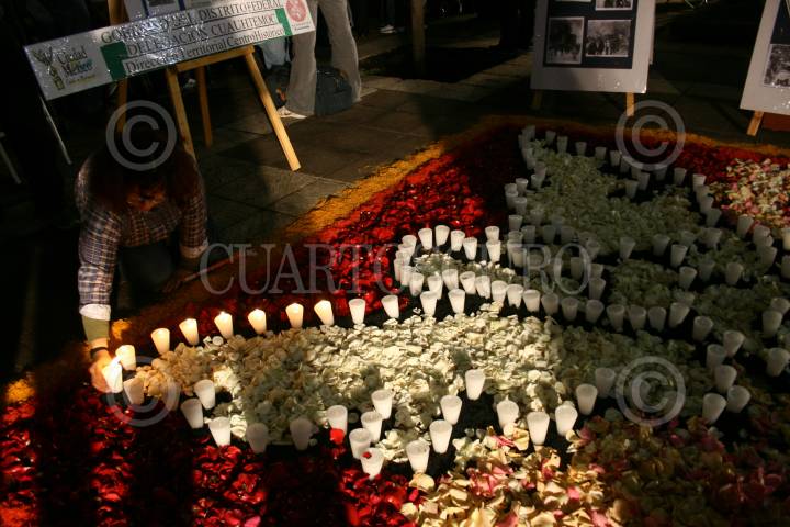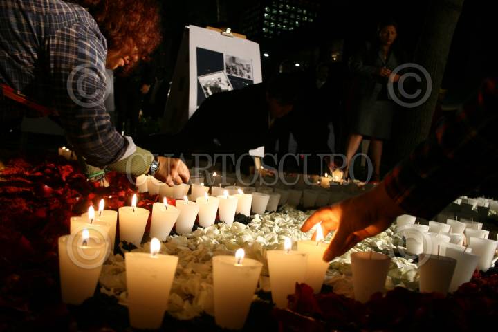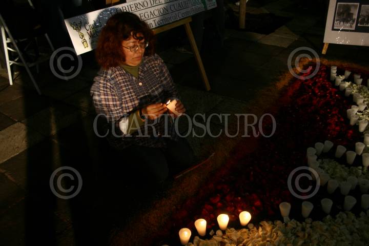 MÉXICO D.F., 19SEPTIEMBRE2008.- Como homenaje por el 23 aniversario del sismo del 85 algunas personas prenden veladoras en la explanada de la plaza de la solidaridad, donde Marcelo Ebrard jefe de Gobierno encabezó una ceremonia donde izó la bandera a media hasta en honor a las personas fallecidas en los sismos del 85. FOTO: SÁSHENKA GUTIÉRREZ/CUARTOSCURO.COM