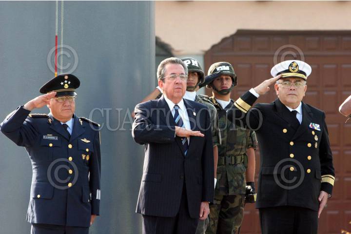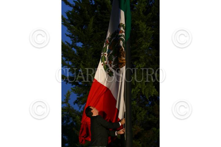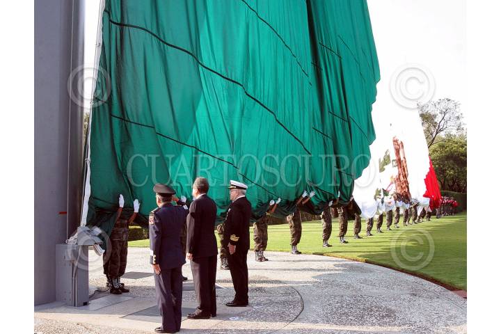 MÉXICO, D.F., 12MAYO2008.- Abelardo Escobar Prieto Secretario de la Reforma Agraria izó la bandera munumental en campo Marte. FOTO: CUARTOSCURO.COM