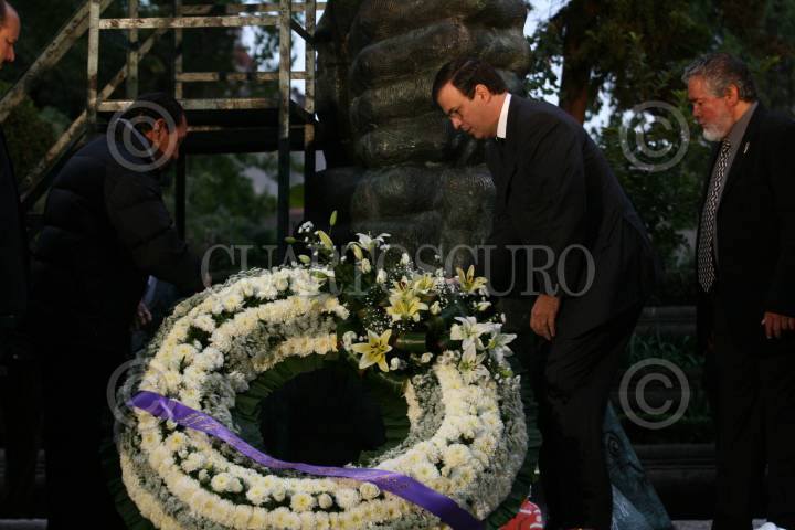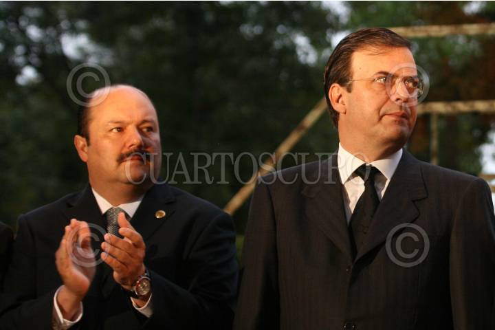 MÉXICO D.F., 19SEPTIEMBRE2008.- César Duarte presidente de la mesa directiva de la Cámara de Diputados , El Jefe de Gobierno del Distrito Federal, Marcelo Ebrard Casaubon, durante el homenaje a los acaecidos hace 23 años en el temblor de 1985. FOTO: SÁSHENKA GUTIÉRREZ/CUARTOSCURO.COM