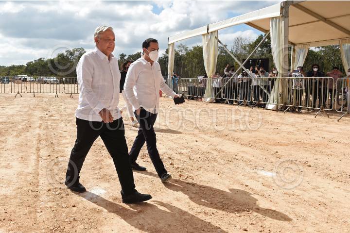 Andrés Manuel López Obrador, presidente de Méxic, presidió la Supervisión de Obra del Tren Maya, Tramo 3 Calkiní – Izamal.